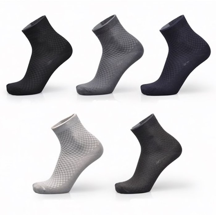 5 par stilige sokker i bambusmateriale som alltid holder riktig temperatur! Endelig et par sokker som puster og motvirker fotsvetten. De Sokkene er laget av bambusfiber med tusenvis av usynlige hull som gir god herding.